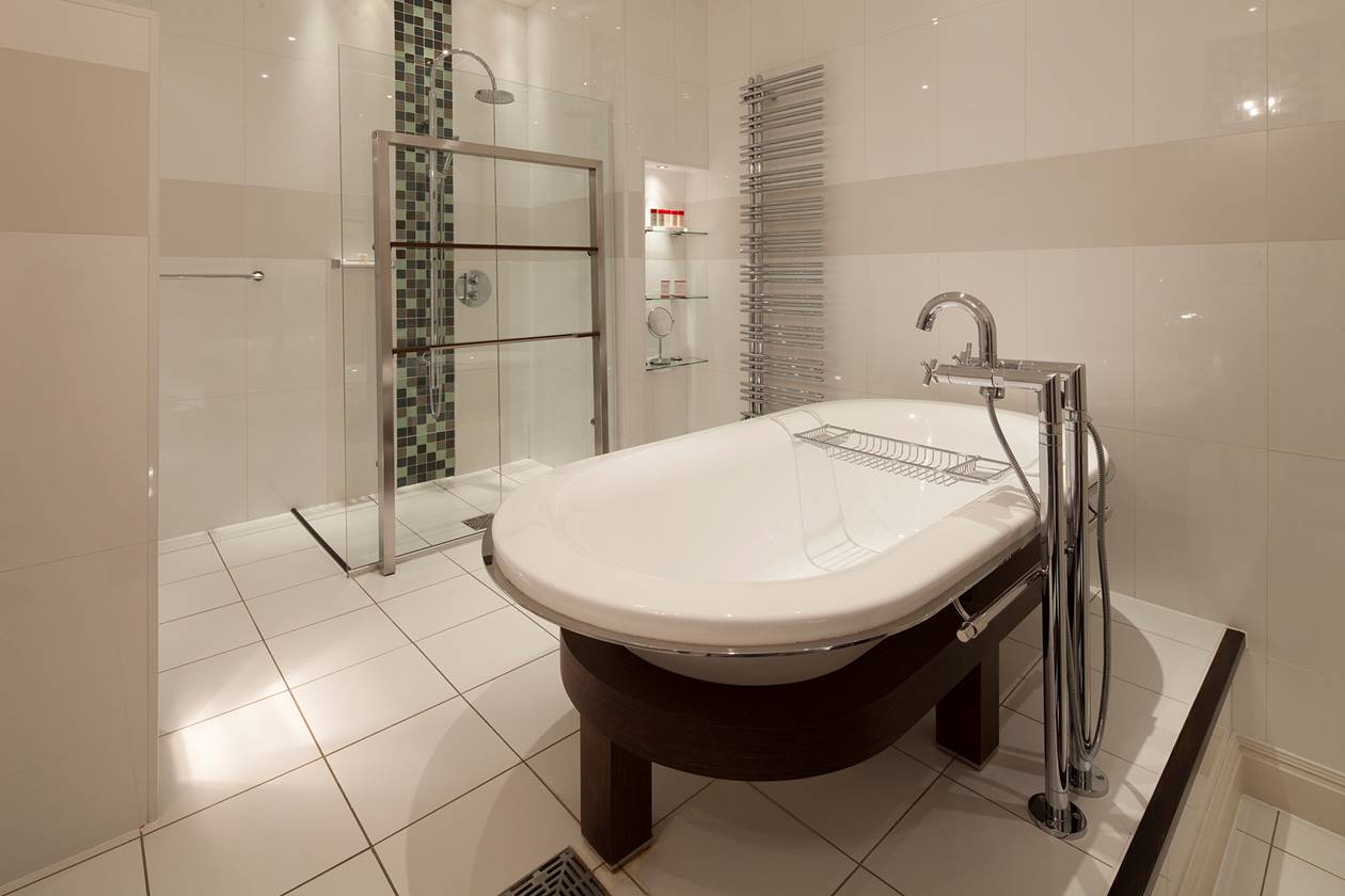 - Raised wet room with superb bath and separate shower