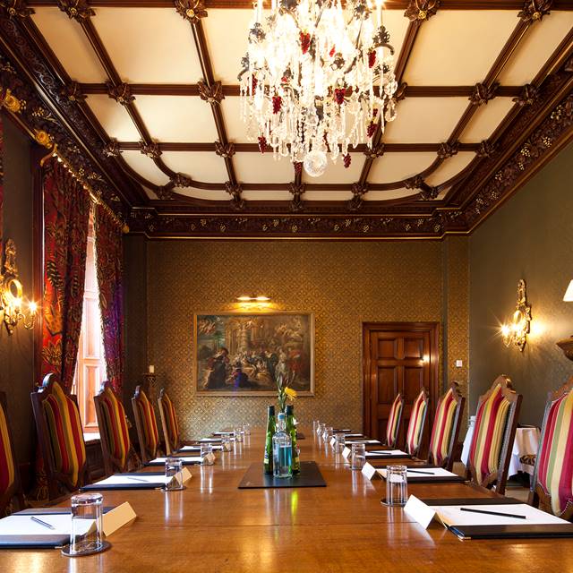 The Shakespeare is perfect for meetings of up to 20 guests. The majestic ‘Lamb of Manchester’ table is the focal-point. Other features include a large chandelier, a bust of Shakespeare and a magnificent butler’s mirror.